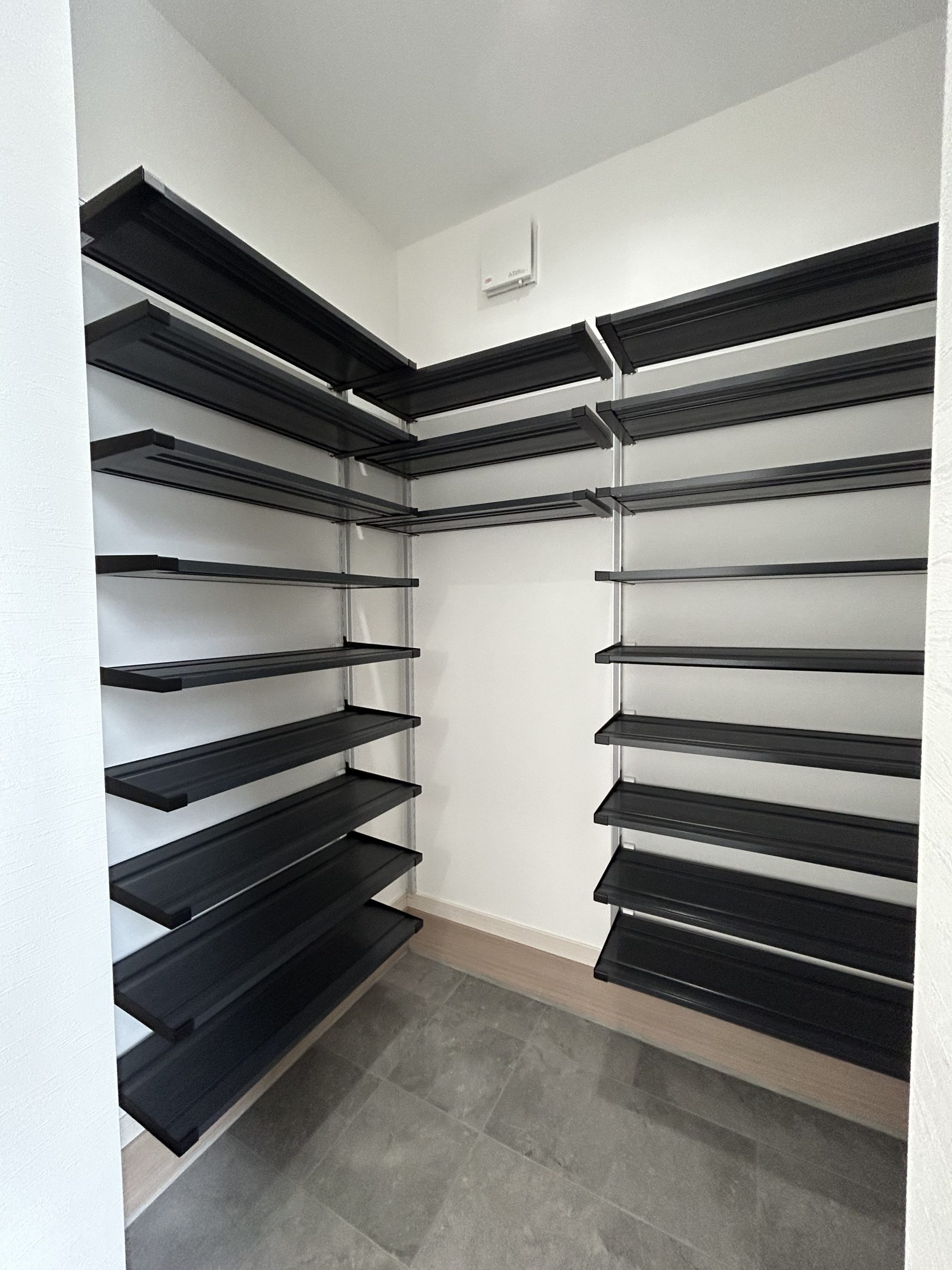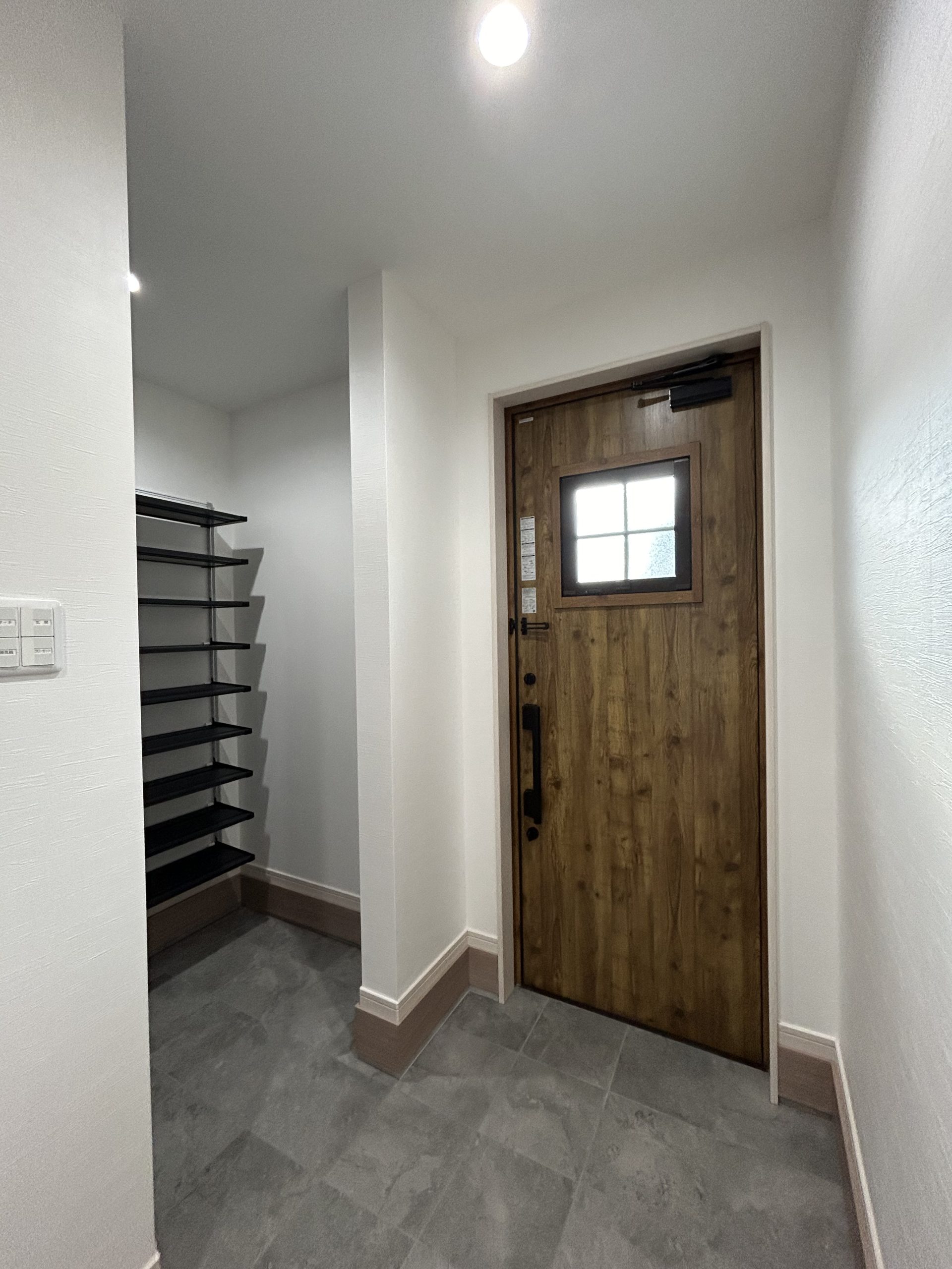 玄関脇にはシューズクローゼットが設けられ、靴だけでなくベビーカーなどを収納できるスペースとなっています。